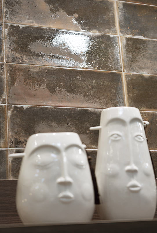 La serie esta compuesta por unos azulejos de pasta roja de Mainzu con un aspecto desgastado que evoca la producción artesanal de las piezas cerámicas, con un juego brillo/mate en su superficie que le confieren una personalidad muy especial.