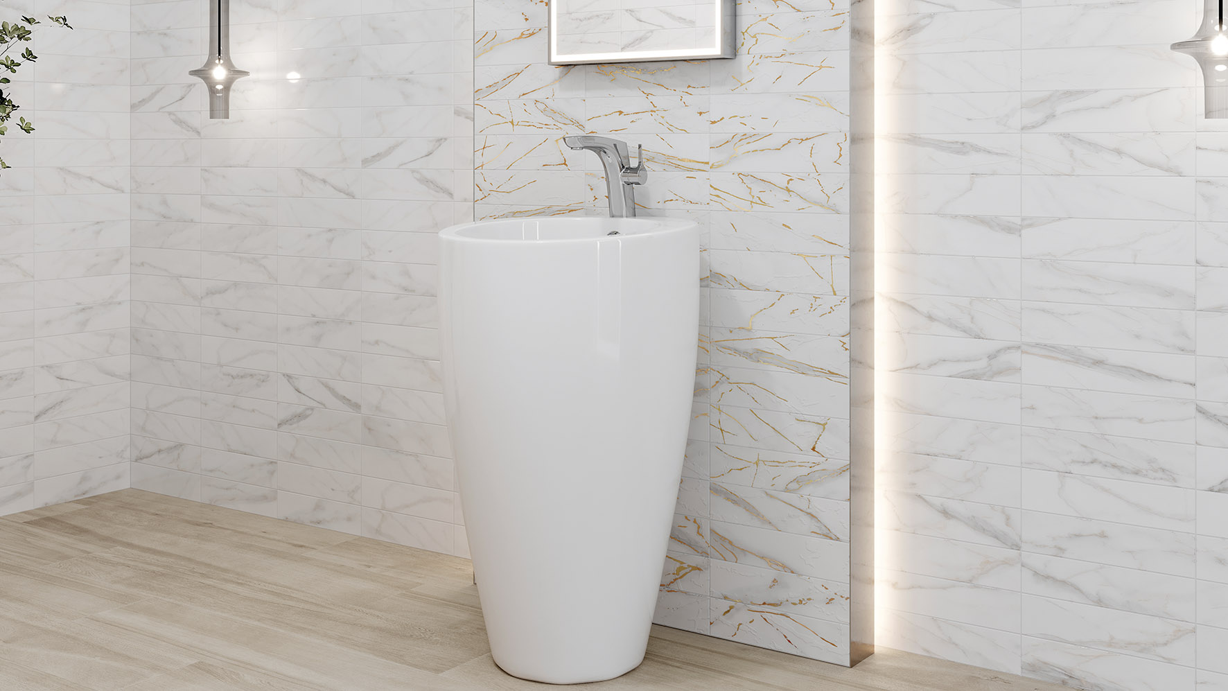 La colección Atlas gold tiene un formato de 7,5×30 cm y están elaborados en pasta blanca imitando el mármol blanco con una veta suave y elegante. Estos azulejos te cautivarán por su delicadeza y la posibilidad de que sean brillo o mate para que se adapte perfectamente a tus preferencias al decorar tu espacio.