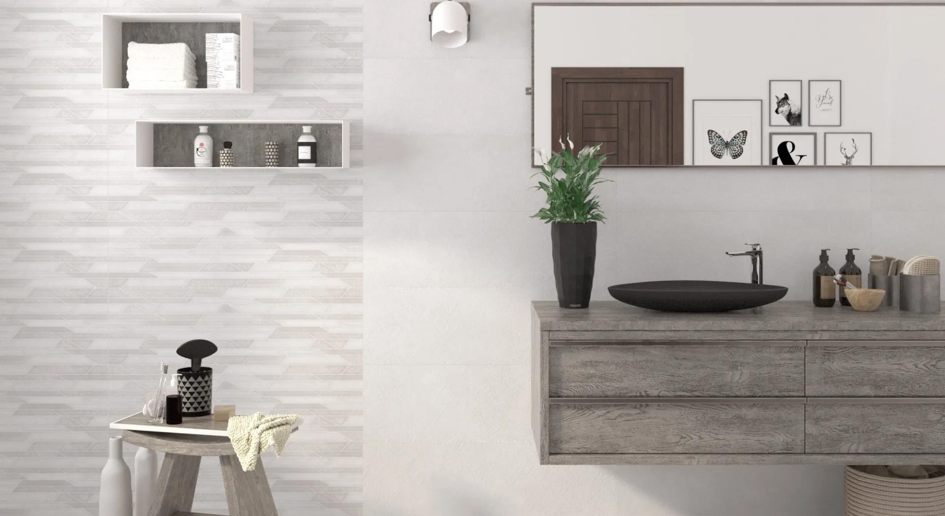 Este revestimiento se complementa a la perfección con Devan 45×45 como pavimento, creando un espacio con una estética unificada y armoniosa.