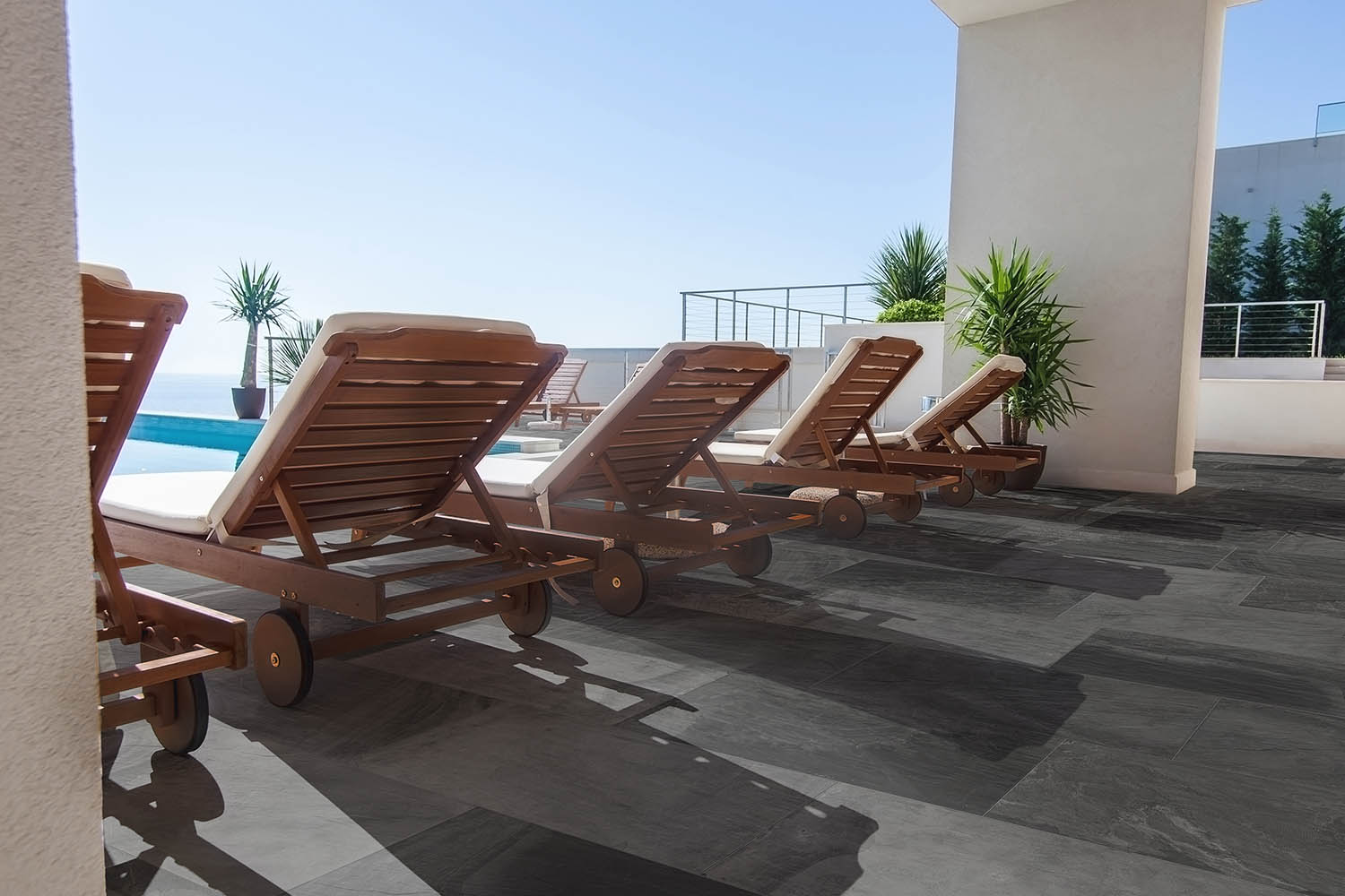 Porcelánico imitación piedra ideal para terrazas en formato 30×60 mate disponible en opción antideslizante.