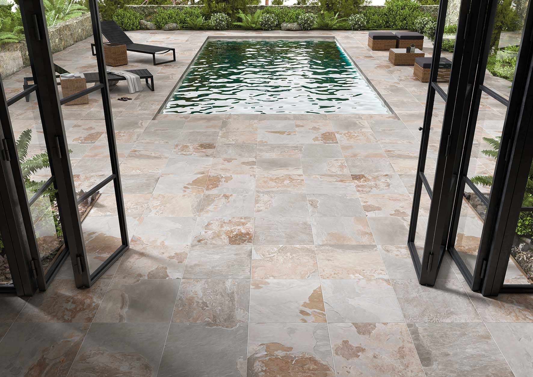 La serie Castleford es un azulejo porcelánico de imitación piedra, disponible en tres colores para adaptarse a diferentes estilos decorativos. Su tecnología “Slipstop” antideslizante lo convierte en una opción segura y práctica, ideal tanto para interiores como exteriores, especialmente en áreas como terrazas y piscinas, donde la seguridad es clave. Combina resistencia, diseño y funcionalidad en un producto versátil y duradero.