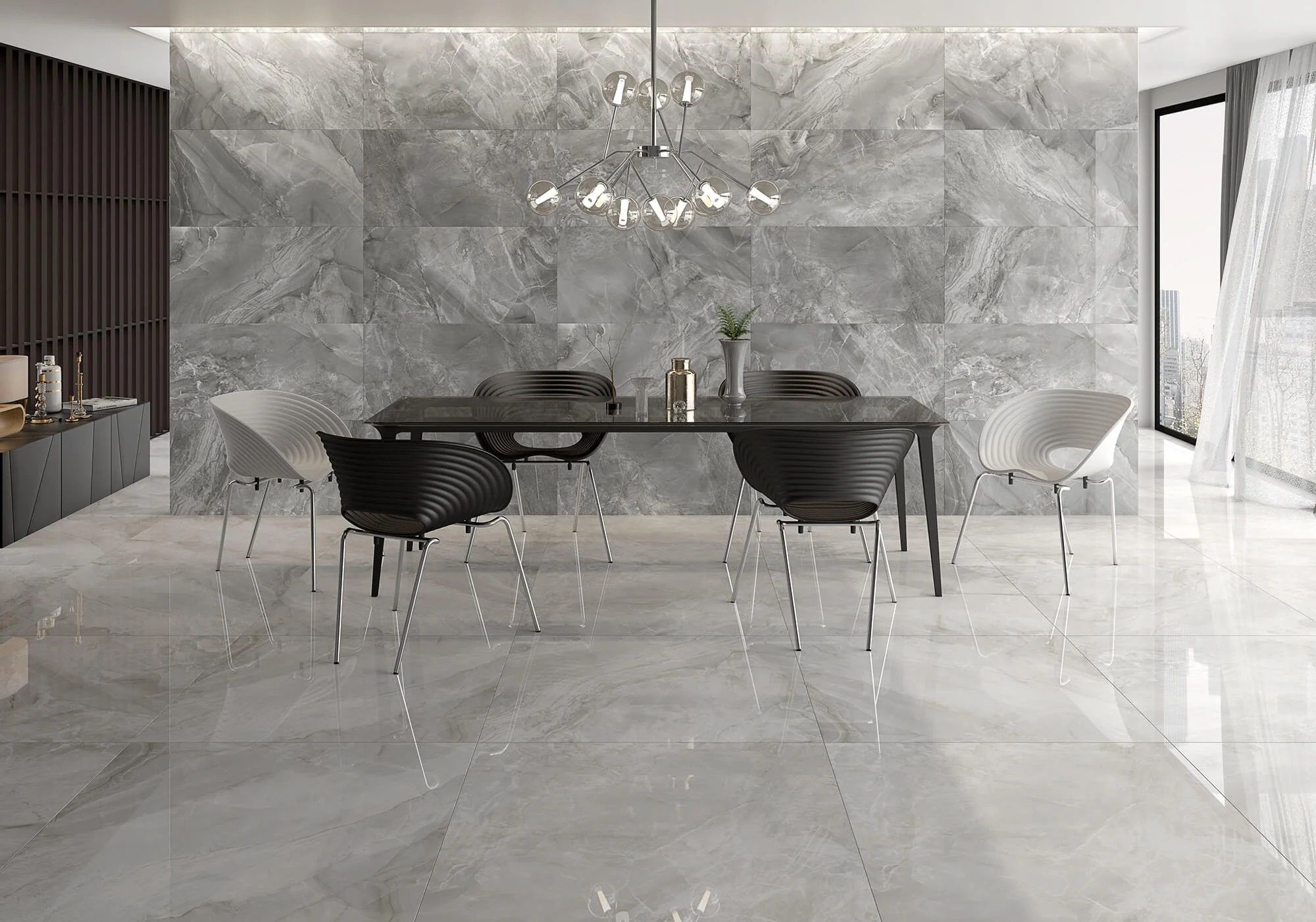 El acabado pulido y rectificado del Clothy Gris proporciona una superficie lisa, brillante y fácil de mantener. Esta característica no solo realza la belleza del azulejo, sino que también permite maximizar la reflexión de la luz, creando una sensación de amplitud y luminosidad en los espacios, incluso en tonos más oscuros. Además, el acabado rectificado asegura una instalación precisa y continua, sin juntas visibles, lo que otorga un aspecto elegante y armonioso.