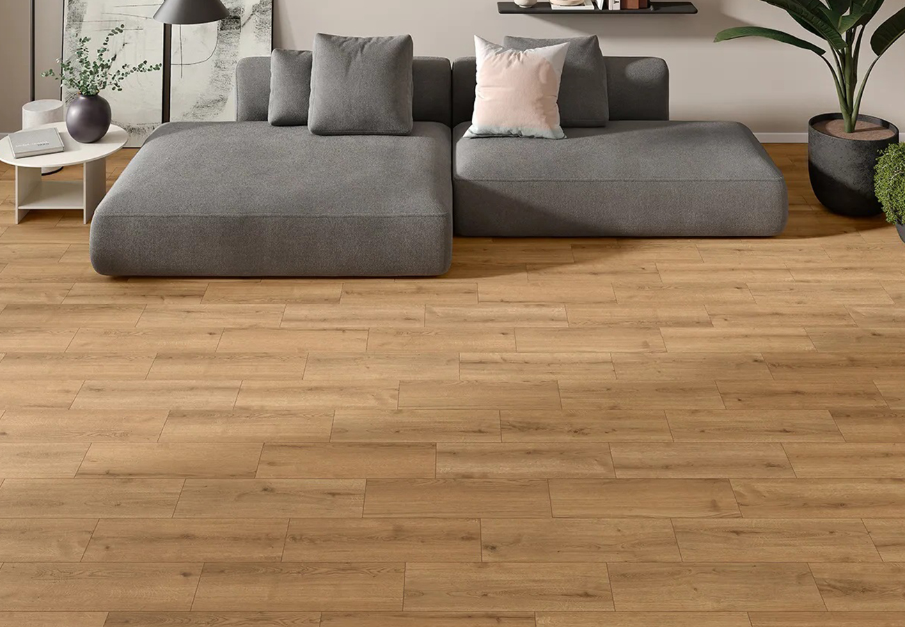 A diferencia de los suelos de madera, el suelo porcelánico imitación madera efecto Natural no requiere barnices ni productos especiales para su mantenimiento. Su superficie es fácil de limpiar y mantiene su apariencia impecable con un mínimo esfuerzo.