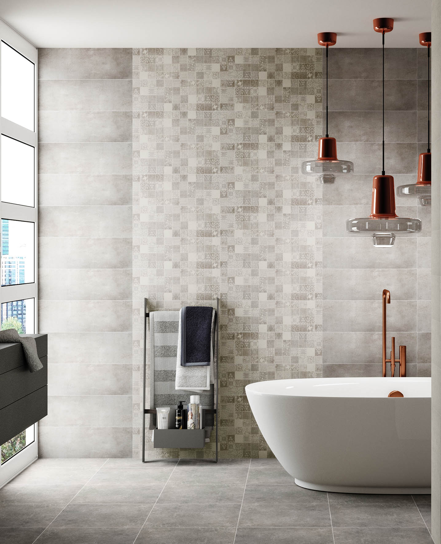 La serie Concret apuesta por azulejos para baño y cocina imitación cemento para revestimiento 20×60.