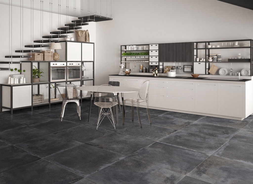 Dafne Negro es un revestimiento cerámico en formato 80×80 cm con acabado mate. Su diseño inspirado en el cemento, con una tonalidad negra profunda, crea ambientes sofisticados y modernos, ideal para suelos de cocinas, baños y áreas comerciales.