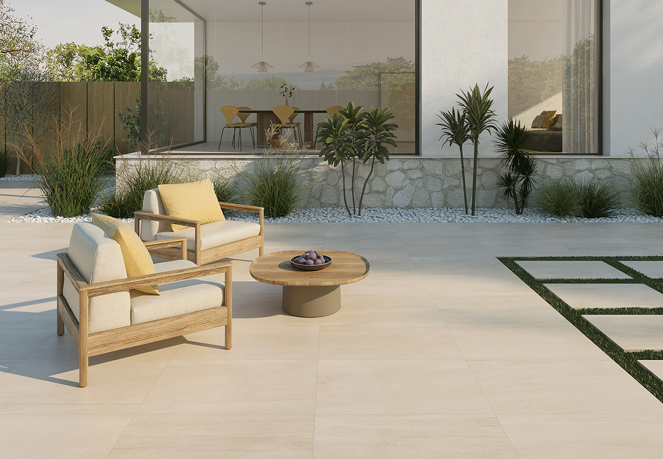 Disponible en un formato de 60×90 mm, los azulejos Dart 20mm en color almond tienen un espesor de 20mm, lo que los convierte en la opción ideal para áreas exteriores expuestas a condiciones difíciles, como jardines, patios, terrazas y caminos. El acabado mate de la superficie crea un aspecto sobrio y elegante, a la vez que proporciona una textura que reduce el riesgo de deslizamientos, lo que lo convierte en una opción segura para zonas al aire libre.