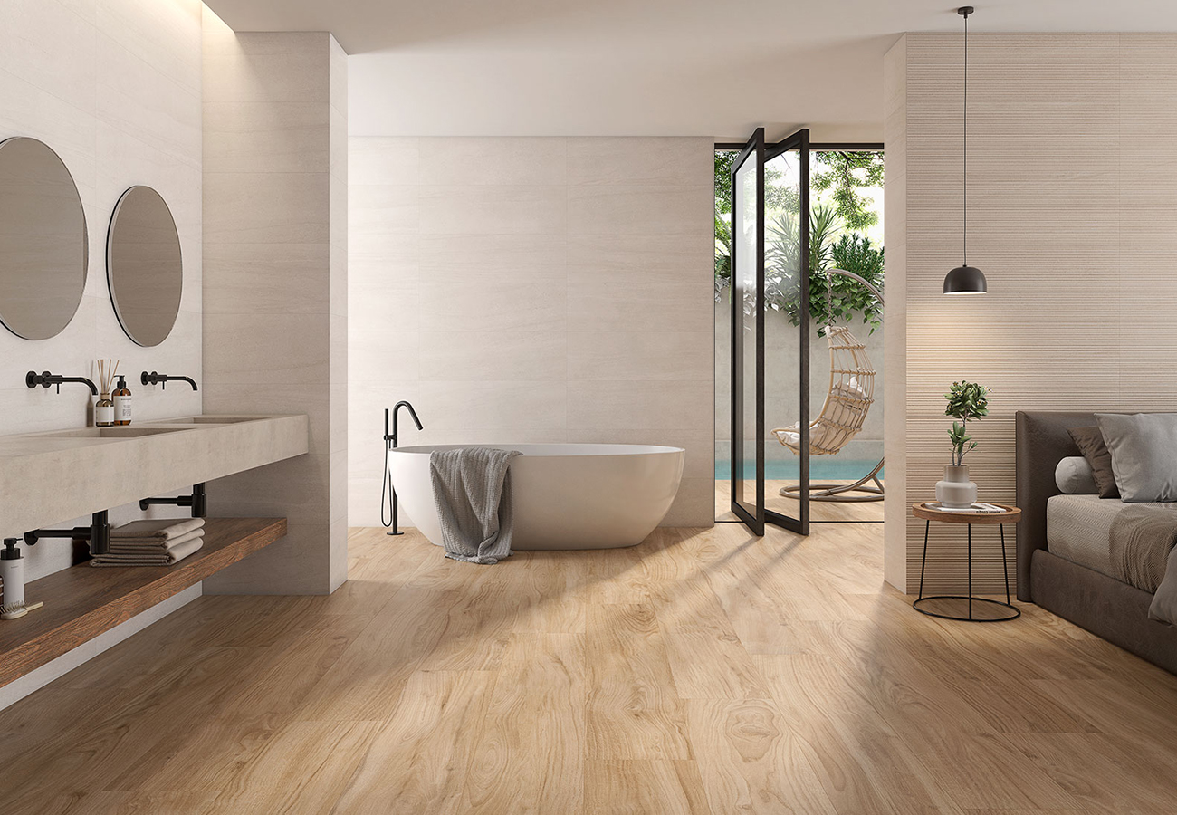El pavimento recomendado para este azulejo es Dart, lo que permite una integración fluida entre los revestimientos de las paredes y el suelo, creando un diseño coherente y armonioso en todo el espacio.