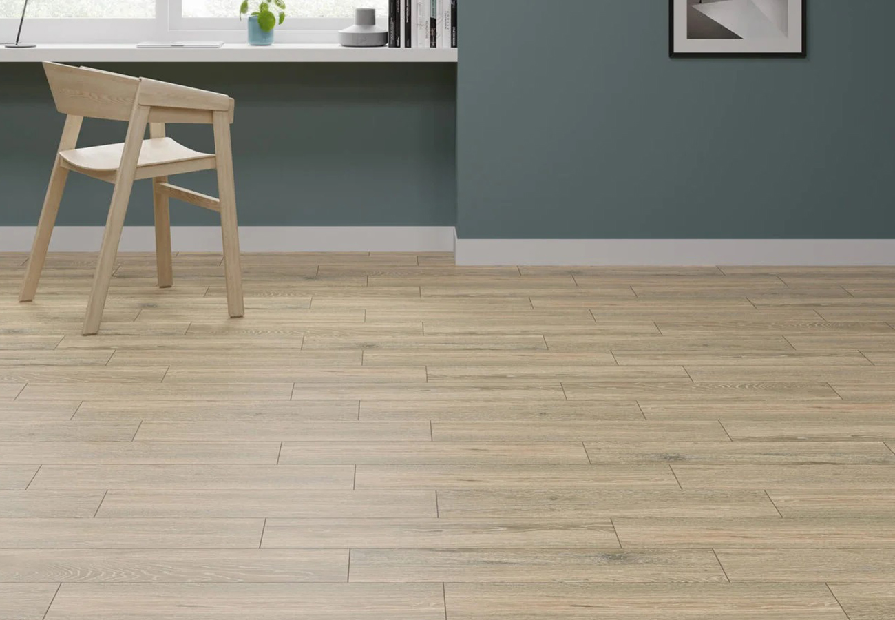El formato 20×120 de los azulejos Deck Roble es perfecto para aquellos que desean un diseño de líneas alargadas y estilizadas. Este tamaño de azulejo es perfecto para crear un espacio moderno y luminoso, especialmente en suelos y paredes de cocinas, baños, salones o pasillos. Gracias a su formato rectangular, se consigue una instalación fluida que hace que el espacio se vea más amplio y uniforme, lo que es ideal tanto para grandes superficies como para detalles decorativos.