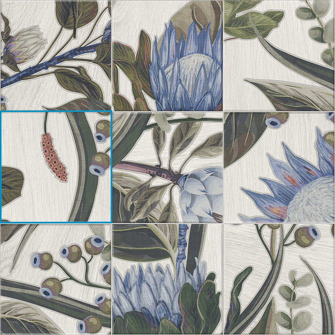 El Decor Blue Leaves 20X20 Mainzu es un revestimiento porcelánico decorado ideal para pavimentos y revestimientos en interiores y exteriores. Perfecto para aplicaciones en baños, cocinas, espacios públicos y piscinas, este azulejo ofrece una estética vintage y rústica con su diseño de hojas azules, que agrega una sensación de frescura y sofisticación a cualquier espacio. Su acabado mate y destonificación V3 le otorgan un estilo único que combina elegancia y funcionalidad.