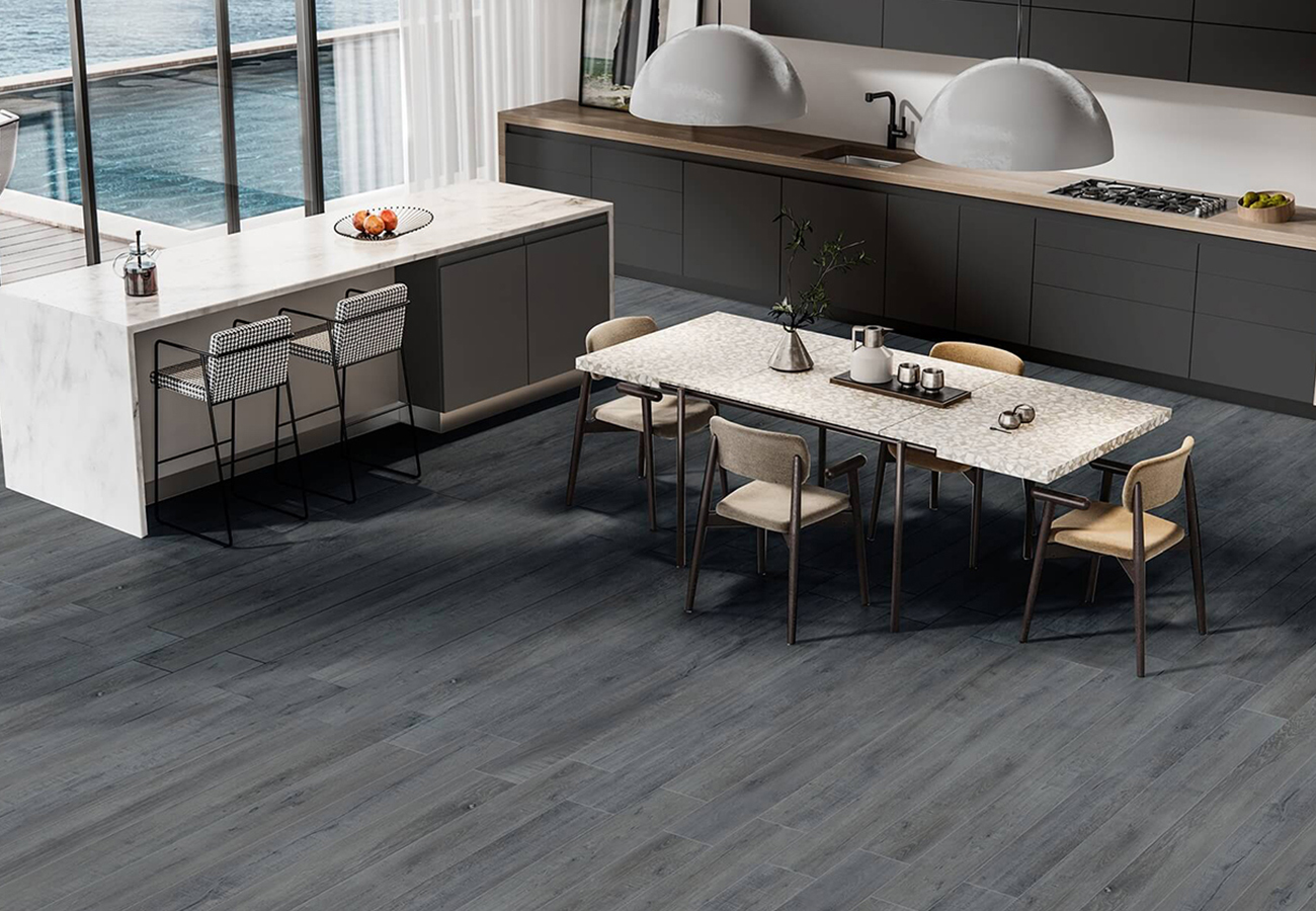 El Forest Antracita de Navarti es un suelo porcelánico imitación madera que destaca por su tonalidad profunda y sofisticada, perfecta para interiores modernos y de alto diseño. Inspirado en la belleza de la madera natural, este suelo combina la estética de la madera con la resistencia y durabilidad del gres porcelánico, ofreciendo un equilibrio perfecto entre elegancia y funcionalidad.