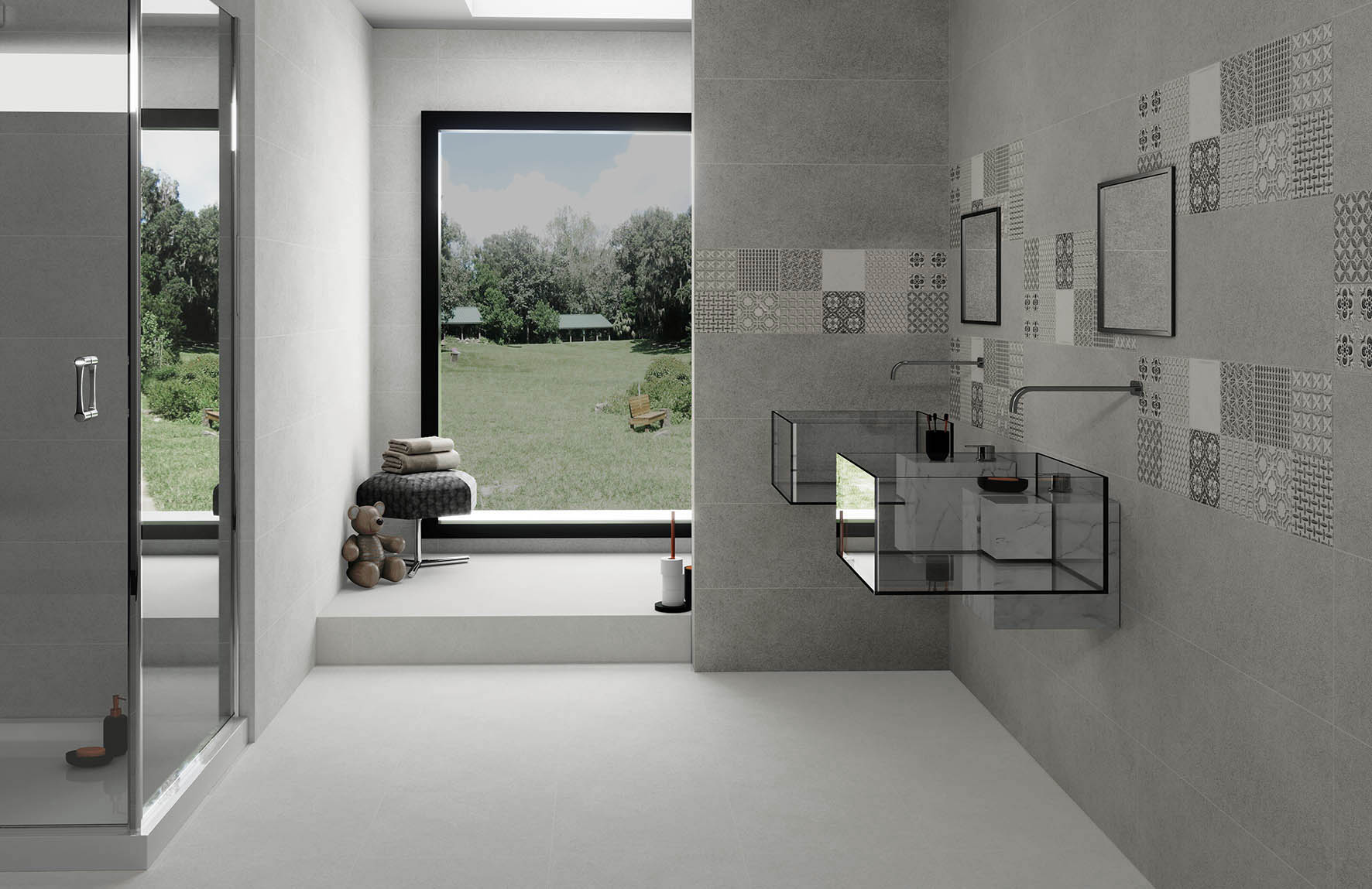 La serie Gijón apuesta por azulejos para baño y cocina imitación cemento para revestimiento 30×90.
