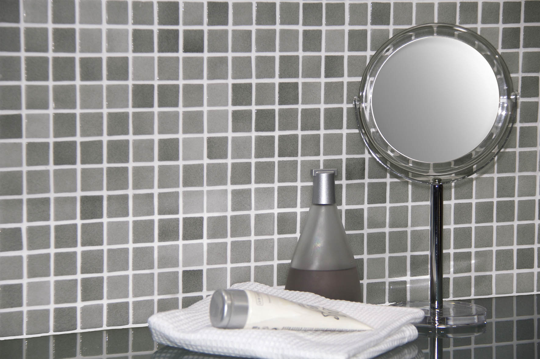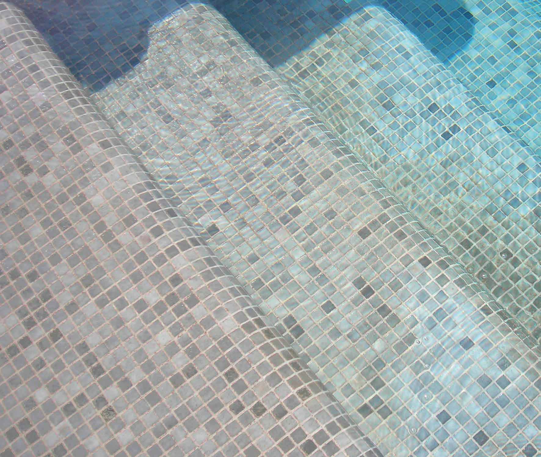 La serie Brumas de gresite apuesta por una solución versátil y económica para recubrir todo tipo de espacios en zonas húmedas como piscinas, baños (especialmente en la zona de la ducha) o spas. Al ser una malla de teselas puede adaptarse a todo tipo de formas curvas en piscinas , pilares cilíndricos, etc.