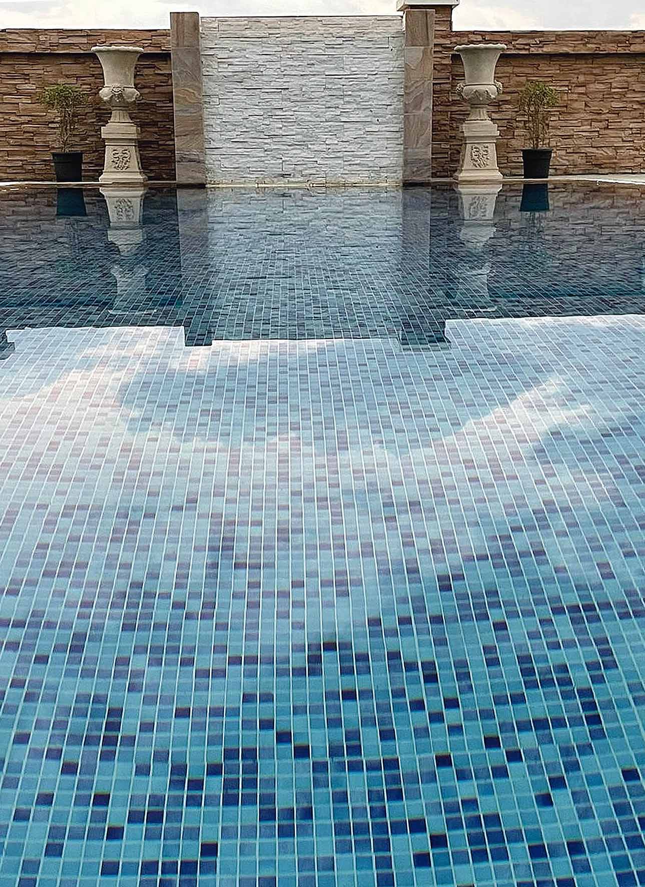 La serie Gresite Combi juega con teselas de diferentes tonos aportado más riqueza cromática. Ideal para recubrir todo tipo de espacios en zonas húmedas como piscinas, baños (especialmente en la zona de la ducha) o spas. Al ser una malla de teselas puede adaptarse a todo tipo de formas curvas en piscinas , pilares cilíndricos, etc.