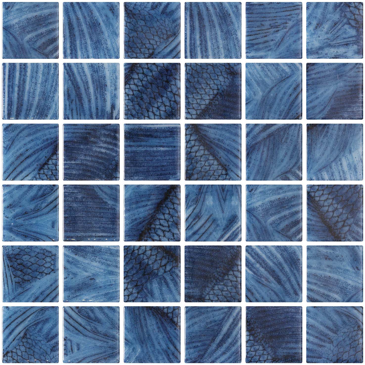 Serie de gresite en mosaico vítreo de tesela grande con variaciones de tonos y diferentes gráficas ofreciendo mayor riqueza cromática. Ideal para recubrir todo tipo de espacios en zonas húmedas como piscinas, baños (especialmente en la zona de la ducha) o spas.
