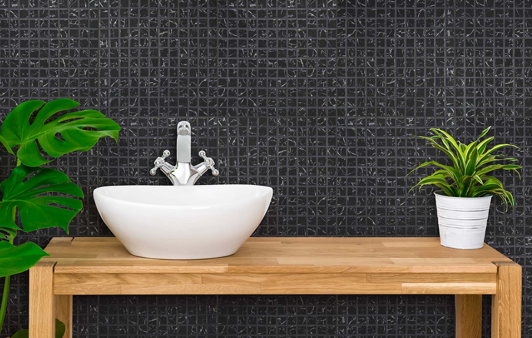 El mármol negro marquina es el protagonista de esta serie para decorar tu espacio. Ideal para recubrir todo tipo de espacios en zonas húmedas como piscinas, baños (especialmente en la zona de la ducha) o spas. Al ser una malla de teselas puede adaptarse a todo tipo de formas curvas en piscinas , pilares cilíndricos, etc.