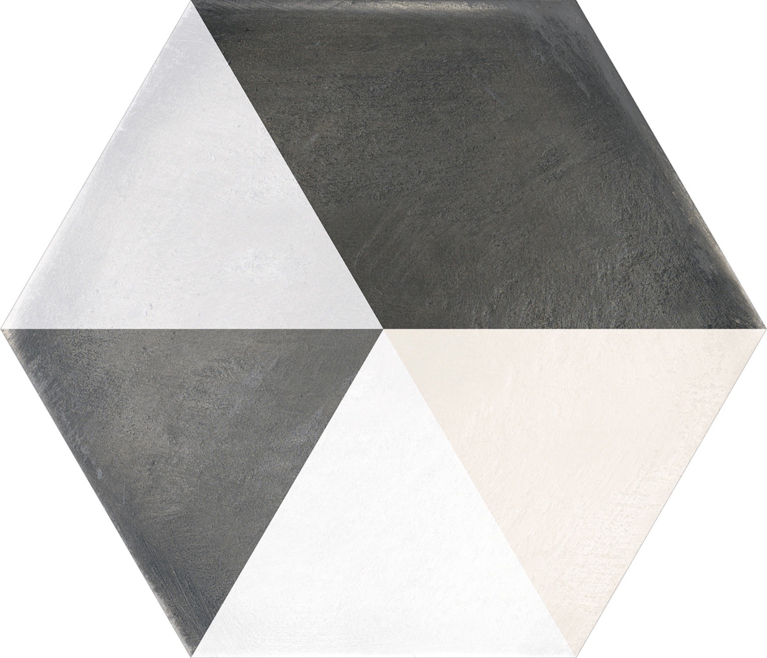 Hexa Boreal Geo Mix de Keros es una pieza decorativa que forma parte de la colección Boreal, diseñada en formato hexagonal 23×27 cm y fabricada en gres porcelánico de alta calidad. Su principal atractivo es su variedad de motivos geométricos, que se presentan de forma aleatoria, creando composiciones únicas e irrepetibles.