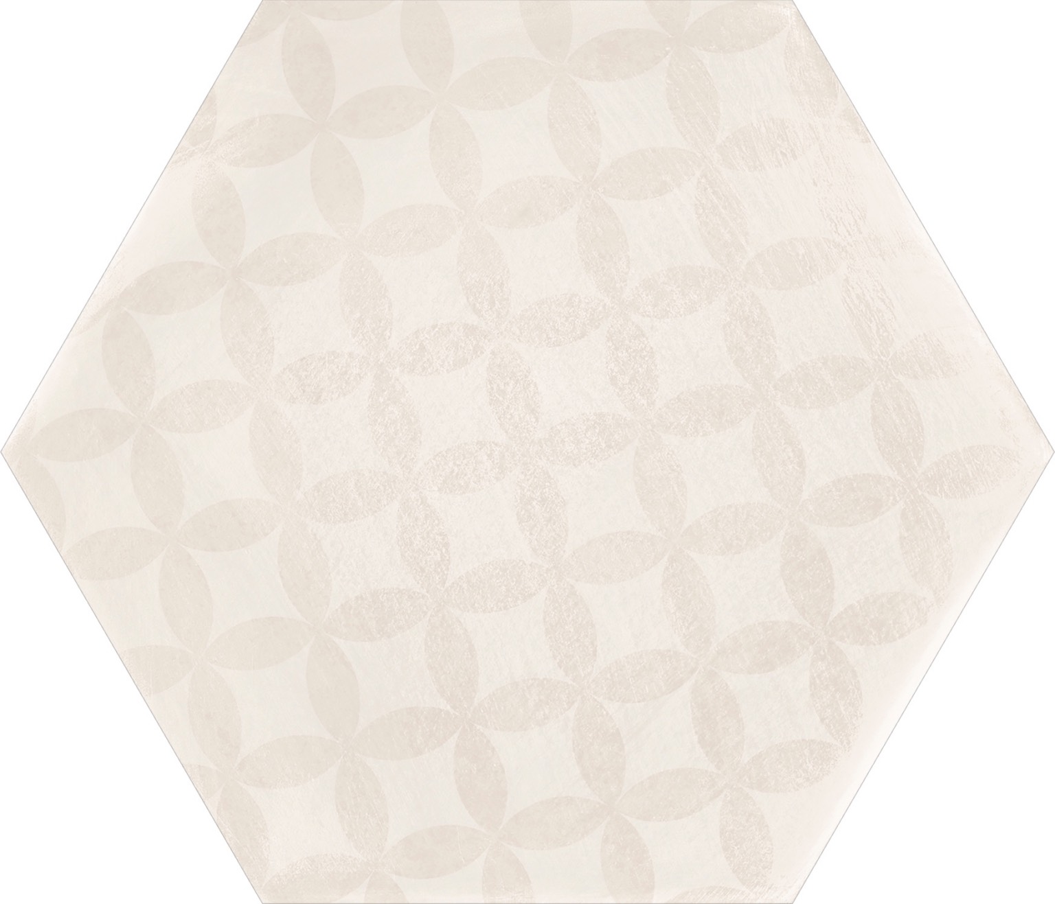Hexa Boreal Hidra Arena es una baldosa porcelánica hexagonal en formato 23×27 cm, con diseño de estilo hidráulico y tonalidades arena y blanco roto. Esta pieza decorativa es ideal para crear composiciones clásicas con un aire actual, gracias a su diseño simétrico y su paleta cálida y suave.
