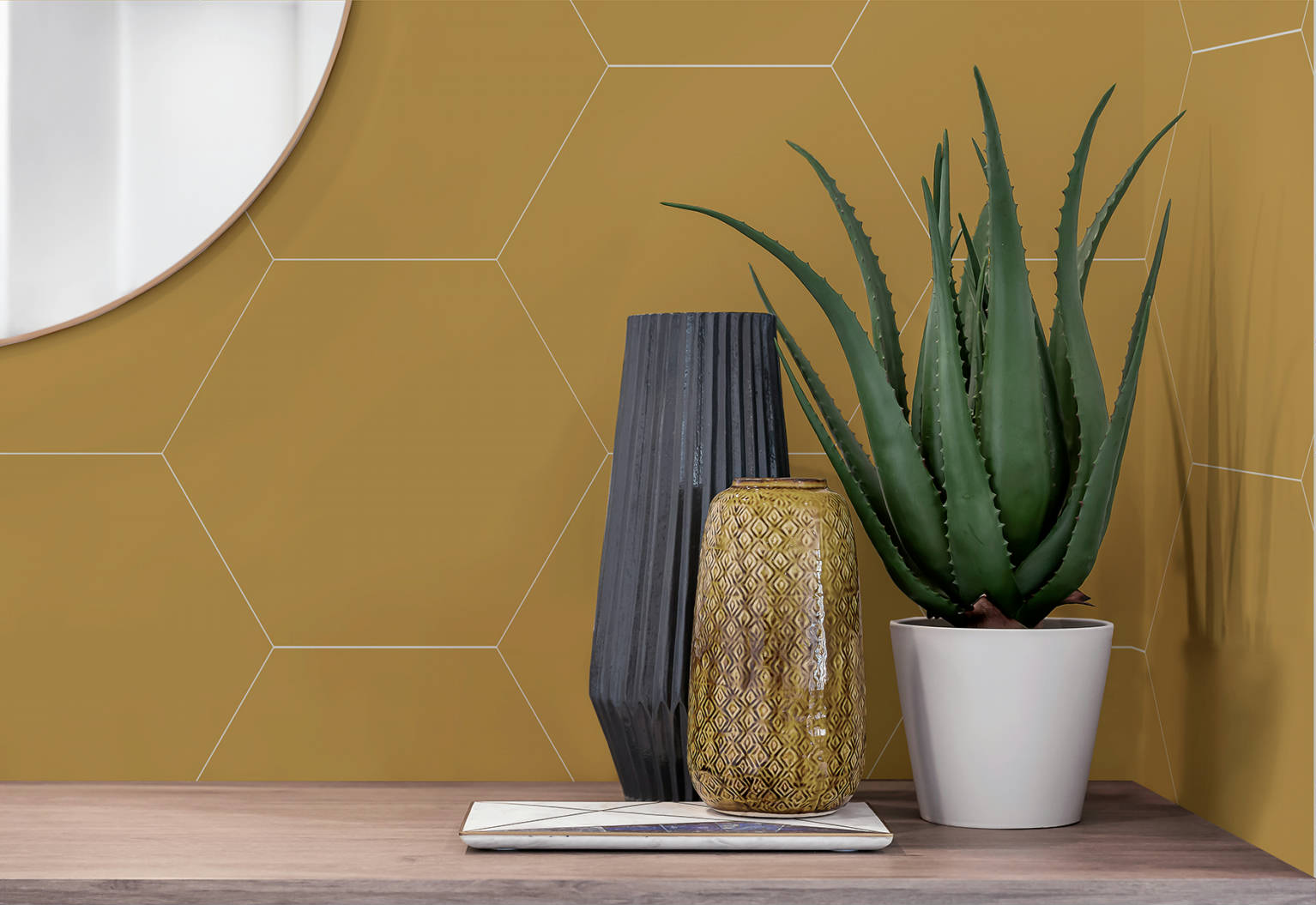 Ideal para baños, cocinas, salones o espacios comerciales, Hexa Element Ocre es una pieza versátil que se adapta a una amplia gama de estilos, brindando un acabado estéticamente agradable y duradero.