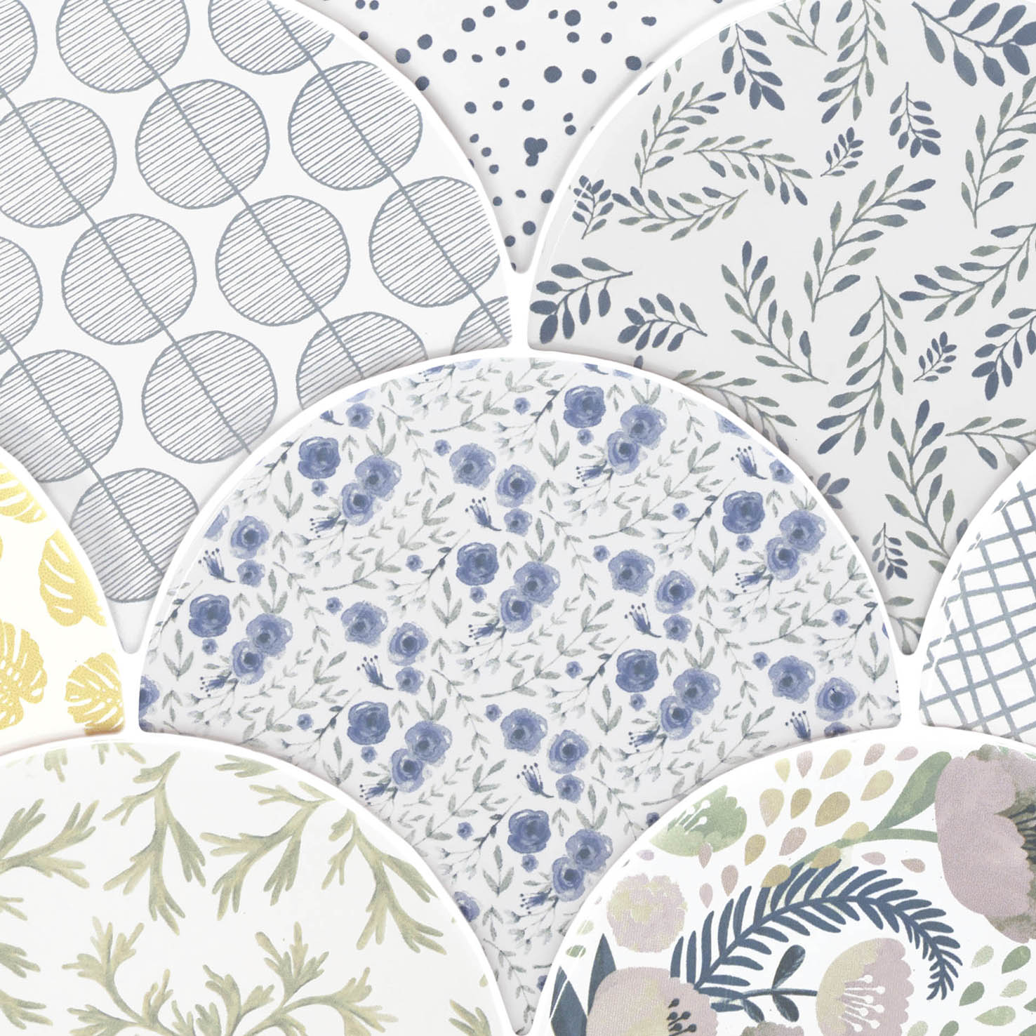 Serie de revestimiento en formato pequeño de formas curvas tipo escama.