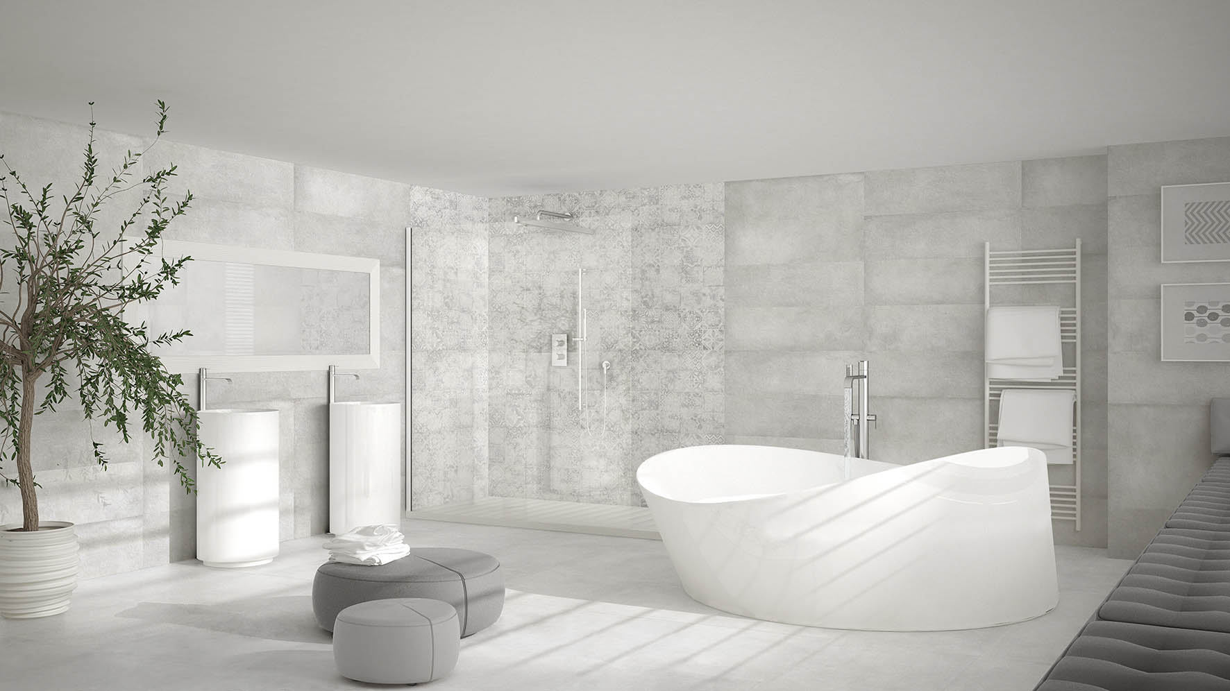London Dune Blanco, Gris y Beige: Estos decorados, inspirados en las formas orgánicas de la naturaleza, aportan una textura suave y un acabado elegante, perfectos para crear ambientes armoniosos y relajantes.