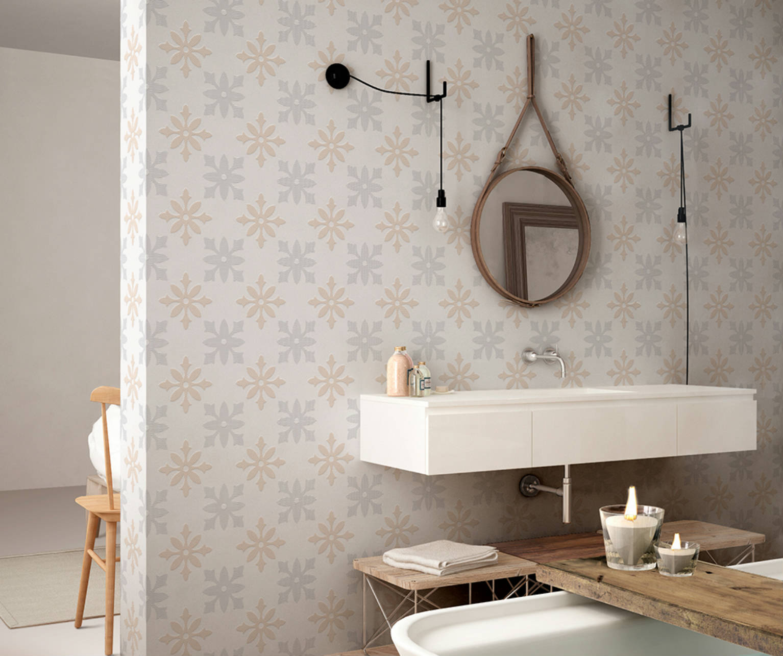 En definitiva, Mallorca Mesquida es el revestimiento perfecto para quienes buscan un equilibrio entre estilo, resistencia y calidez. Su diseño floral en tonos naturales, junto con el brillo delicado y texturizado de su acabado granilla, lo convierten en una opción decorativa que eleva la personalidad de cualquier espacio, aportando elegancia atemporal, confort visual y una atmósfera acogedora y sofisticada.