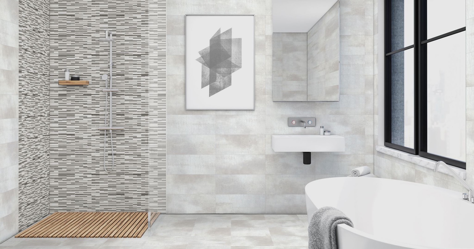 Natura Gris de Keros Cerámica está disponible en los siguientes formatos: 30×60 cm (12″x24″) y 20×50 cm (8″x20″). Con un acabado mate y tonalidad gris suave, es perfecto para revestir interiores y exteriores protegidos, como baños, cocinas, salones y terrazas.