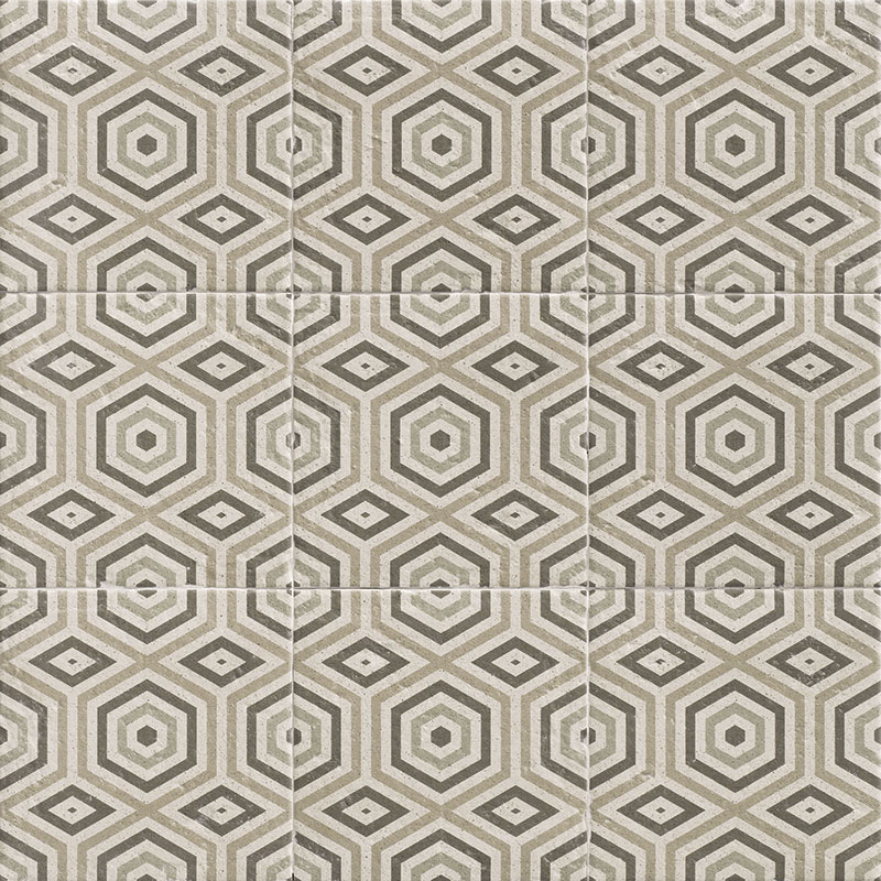 Esta serie se inspira en piezas reales de cemento del Norte de Europa, con símbolos y escudos de esa región, añadiendo otros motivos geométricos
