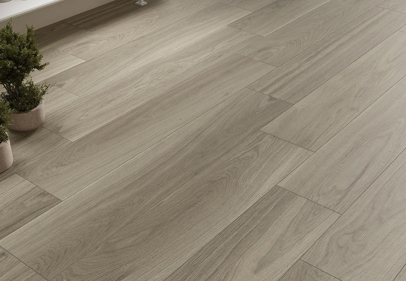 El suelo porcelánico imitación madera Grey 23×120 cm de la Serie Nuuk ofrece una estética moderna y elegante. Su acabado mate y diseño de vetas realistas aportan un toque contemporáneo a cualquier espacio interior. Ideal para salones, dormitorios y oficinas, este porcelánico imitación madera combina la belleza de la madera con la durabilidad y fácil mantenimiento del gres porcelánico. Disponible en formato 23×120 cm, es perfecto para quienes buscan un suelo cerámico imitación madera de alta calidad.
