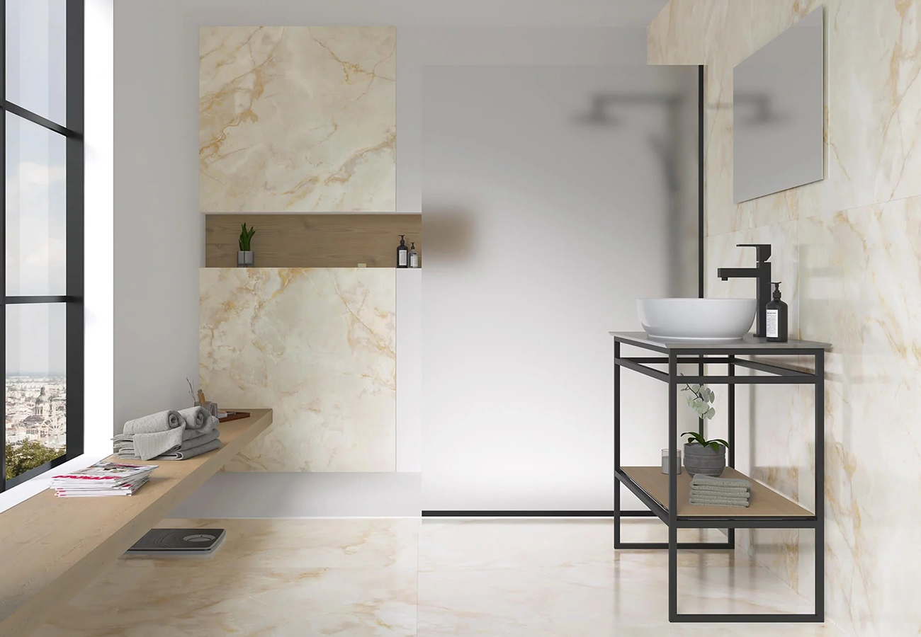 El diseño del Orix Marfil incluye una ligera variación, lo que aporta un toque único a cada instalación. Gracias a esta variabilidad, cada pieza tiene una identidad propia, creando una atmósfera exclusiva y personalizada en cualquier espacio. Además, las piezas especiales, como rodapiés y peldaños, permiten completar la instalación de manera coherente, mejorando tanto la estética como la funcionalidad del espacio.