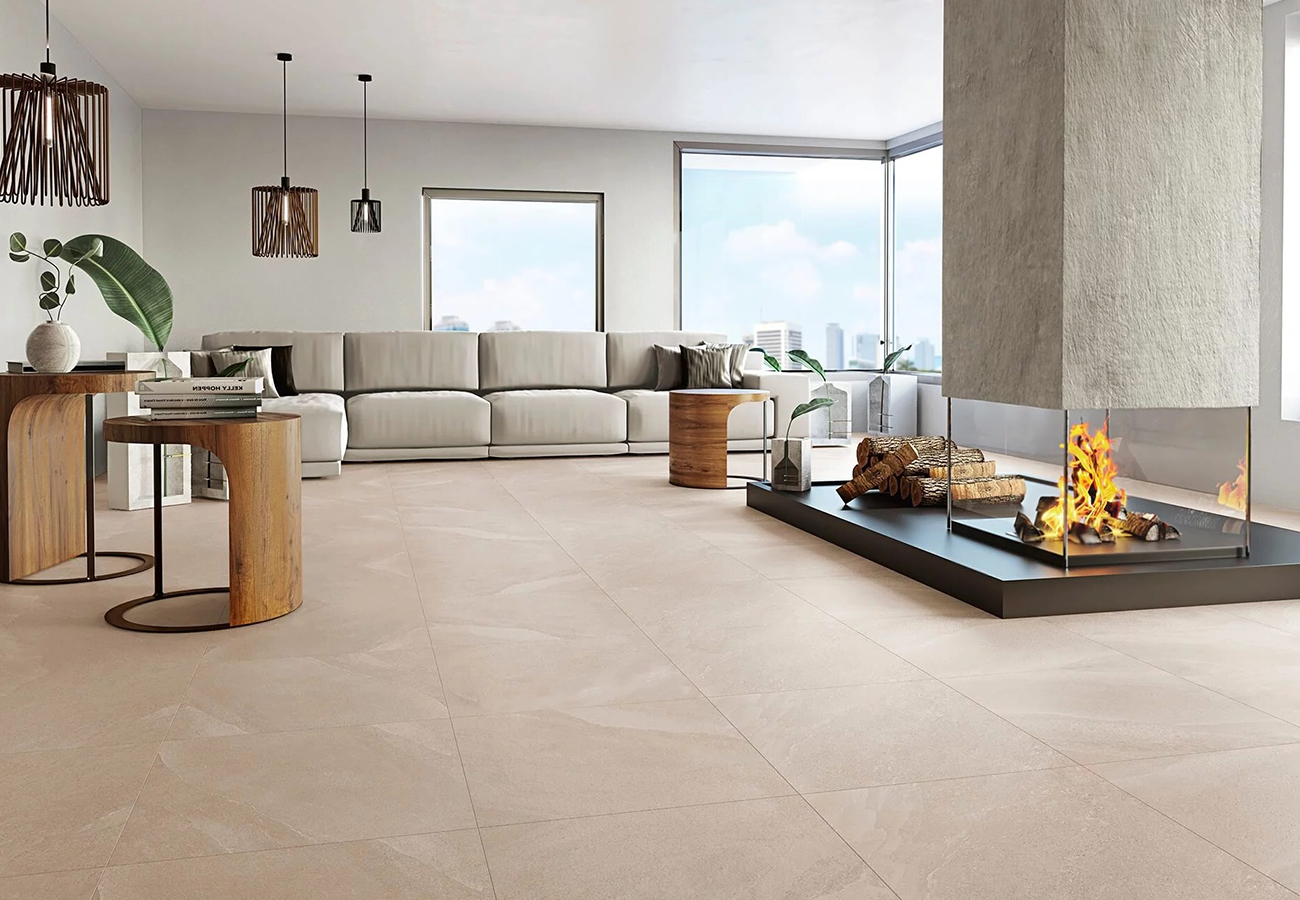 Uno de los mayores valores técnicos de la serie es su Clase 3 de antideslizamiento, lo que la certifica como una superficie segura para pavimentar exteriores, zonas de piscina o áreas comerciales con tránsito intenso. Gracias a su tecnología “In&Out”, es posible utilizar el mismo material desde el salón hasta la terraza, eliminando barreras visuales y ampliando la percepción del espacio.
