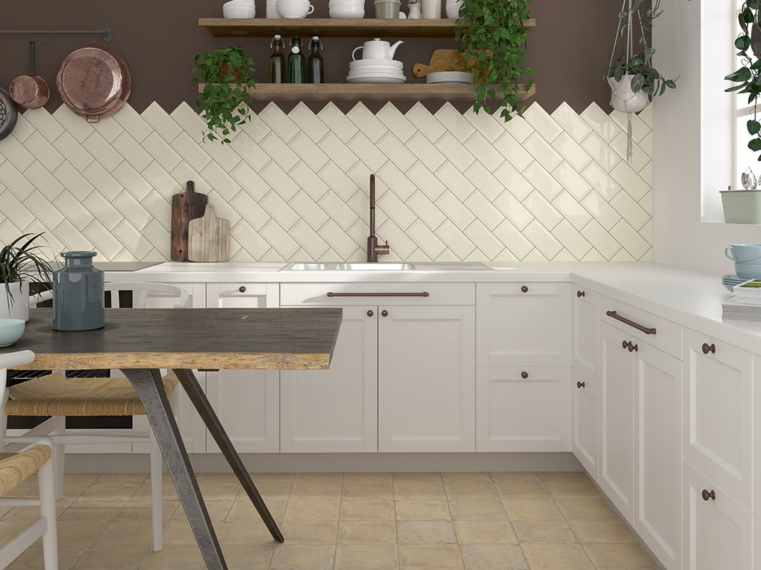 Serie de azulejos biselados monocolores para baño y cocina.