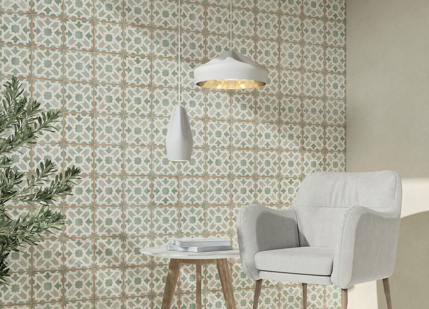 La serie Casablanca es un azulejo porcelánico mate inspirado en la cerámica tradicional del norte de África.