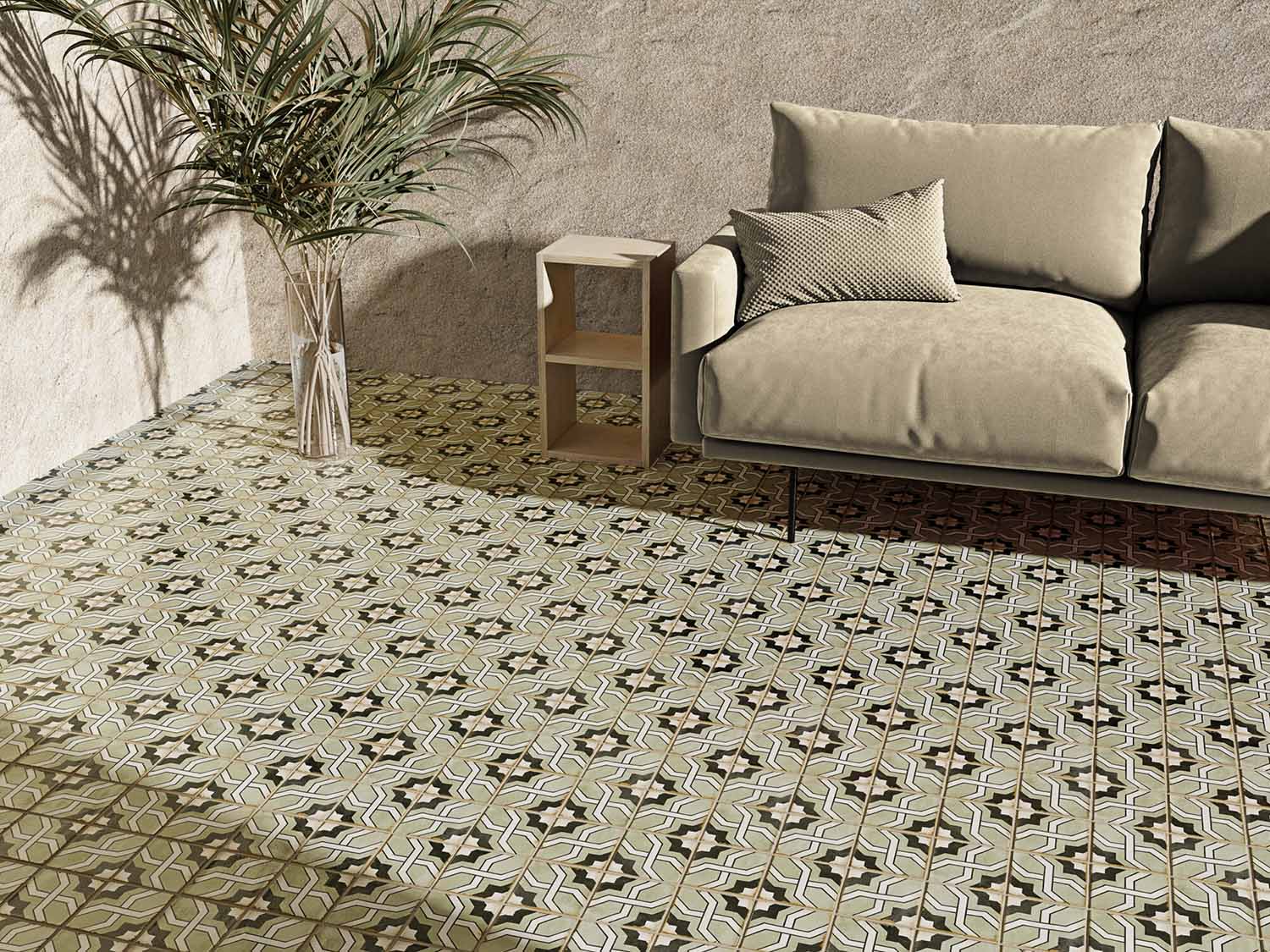 Lo que distingue a CASABLANCA es su capacidad para infundir cualquier espacio con una calidez excepcional. Ya sea utilizado como pavimento o revestimiento, este azulejo añade un toque de elegancia y carácter a cualquier ambiente. Sus bordes irregulares y sus detalles artesanales crean un efecto de cerámica envejecida, otorgando al entorno una sensación de autenticidad y atemporalidad.