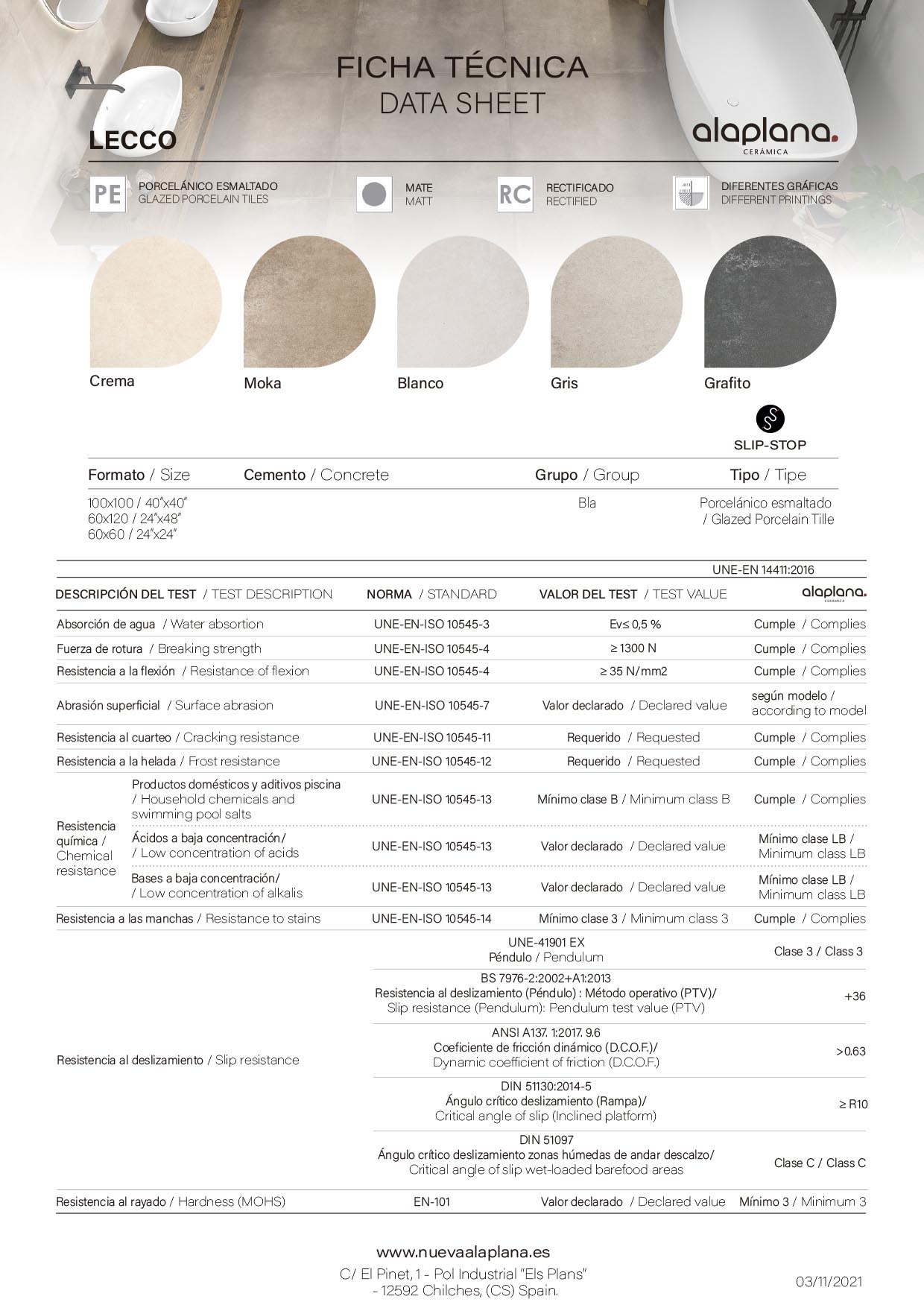 Uno de los aspectos más destacados de la serie Lecco es su característica “Slipstop”, diseñada para proporcionar una superficie antideslizante. Esta cualidad se vuelve especialmente valiosa en áreas propensas a la humedad, como piscinas y terrazas, donde la seguridad es primordial y también destacan por su tacto sedoso tanto en interiores como en exteriores, lo que los hace versátiles y cómodos de utilizar en una combinación perfecta de estilo, funcionalidad y seguridad para su proyecto de diseño.