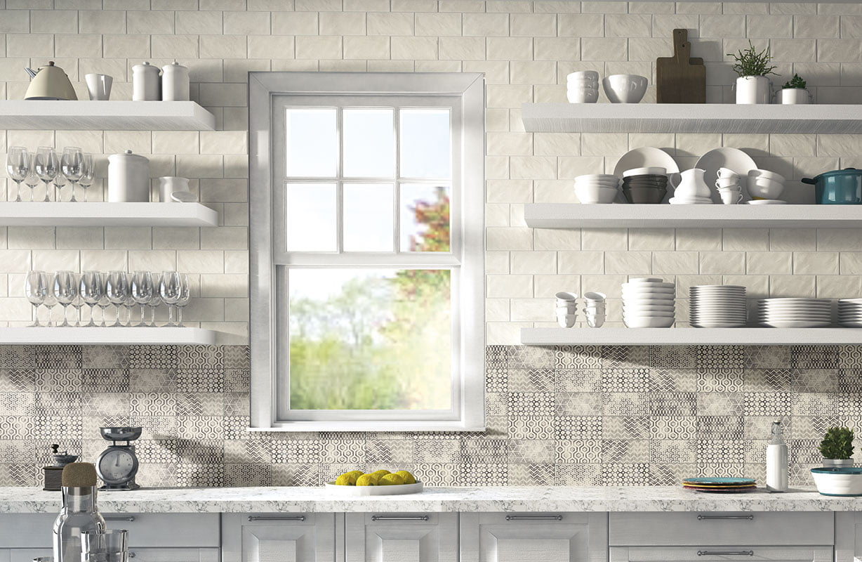 Serie de azulejos geométricos para baño y cocina.
