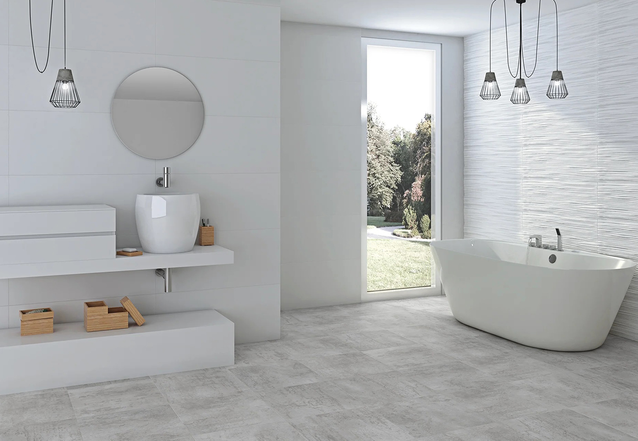 El azulejo Sandra Blanco Mate también está diseñado para integrarse fácilmente en proyectos más grandes, ya que su pavimento recomendado es el Method 60×60 cm. Esto permite utilizar este revestimiento junto con otras piezas de 60×60 cm, lo que facilita el diseño de superficies amplias y continuas, logrando un acabado uniforme en todo el espacio. Esto es especialmente útil en proyectos de gran escala, donde la coherencia visual y la facilidad de instalación son fundamentales.