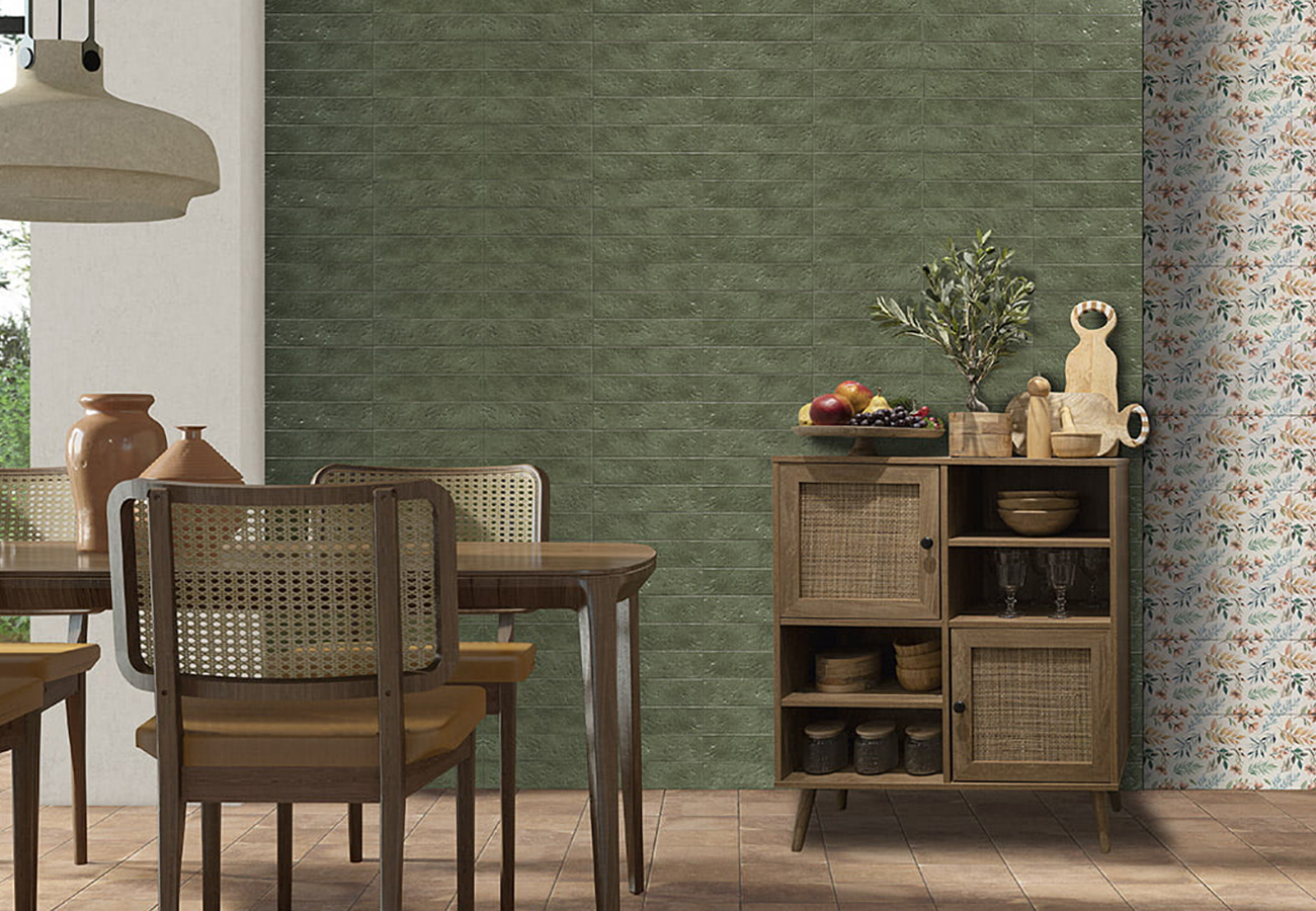 El Selva Amalfi 7.5×30 de Mainzu es un azulejo de pasta roja que destaca por su tonalidad verde selva y su capacidad para transformar cualquier ambiente en un espacio moderno y elegante. Su acabado brillo potencia la luminosidad y la intensidad del color, mientras que su destonificación V1 mantiene una tonalidad uniforme en toda la instalación, asegurando una apariencia armónica.