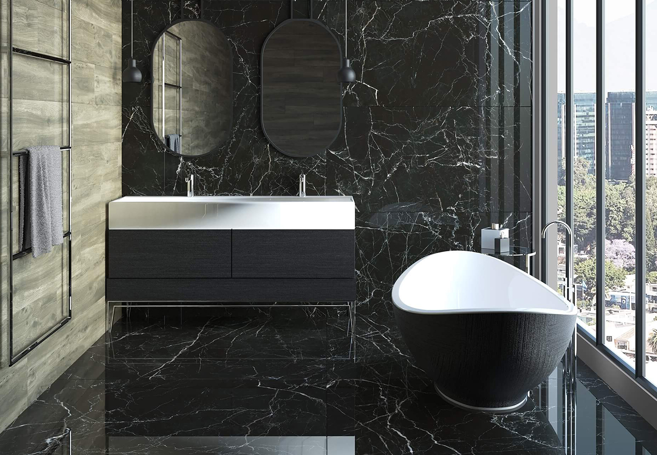 El azulejo Strom Black de Navarti es una excelente opción para pavimentos exteriores e interiores, con un diseño en granilla pulida y un acabado rectificado. Disponible en dos formatos, 60×120 cm, ambos con una variación gráfica leve, lo que garantiza un resultado estéticamente armónico en diferentes espacios. Este azulejo porcelánico digital tiene una durabilidad excepcional, siendo adecuado para proyectos de alta exigencia tanto en hogares como en espacios públicos. Además, cuenta con piezas especiales como rodapié y peldaños para una integración perfecta. La calidad de los materiales y su diseño moderno lo convierten en una opción ideal para revestir tanto superficies de alto tránsito como áreas de menor uso, con la garantía de resistencia al desgaste y facilidad de mantenimiento.