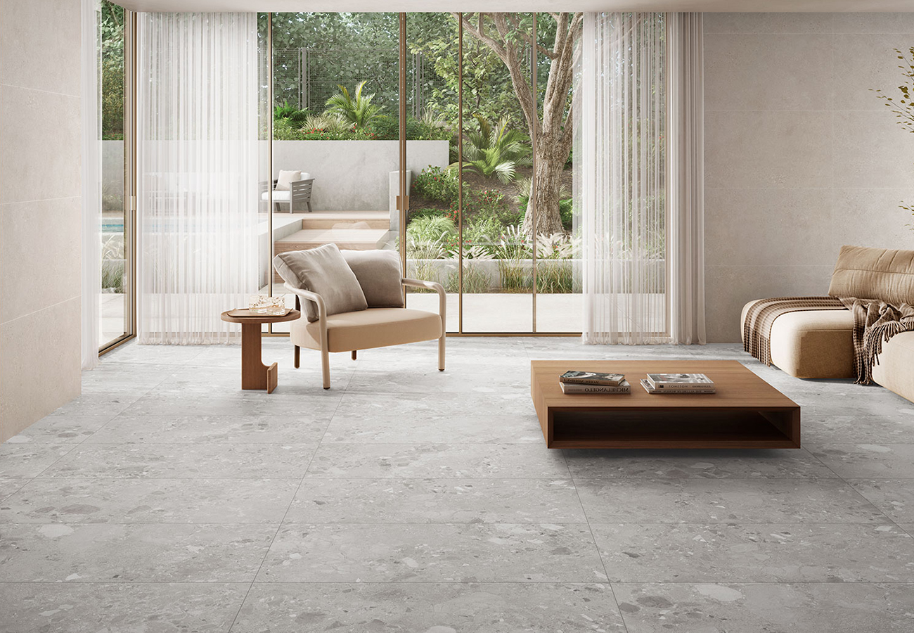 Disponible en los formato 60×120, Ura Grey ofrece flexibilidad en cuanto a la instalación, permitiendo que se utilice en espacios grandes como salones y cocinas, así como en áreas más pequeñas o de transición. El formato 120×120 es ideal para crear superficies continuas y homogéneas, mientras que el formato 60×120 permite combinaciones interesantes y transiciones suaves entre diferentes áreas. El acabado mate y rectificado de Ura Grey no solo aporta una estética elegante, sino que también facilita su mantenimiento, haciendo que la superficie sea fácil de limpiar y mantener en perfectas condiciones.