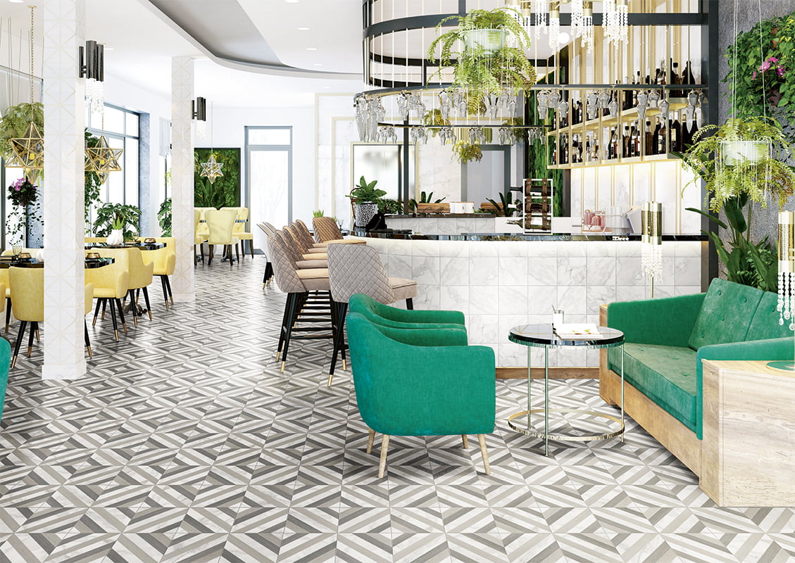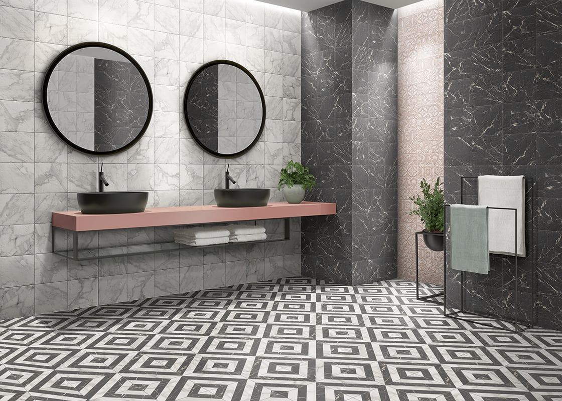 Serie de porcelánico imitación de mármol inspirada en los palacios europeos del siglo XVIII con un estilo elegante y atemporal.