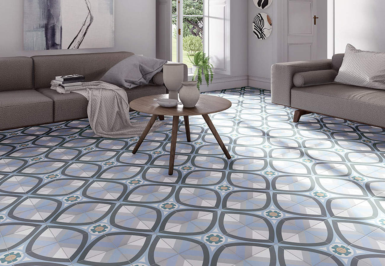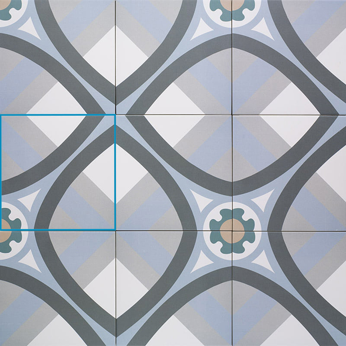 El Azulejo Yport Normandy 20X20 de Mainzu es una pieza decorada que fusiona estilo vintage y funcionalidad moderna. Con una paleta de colores suaves como el gris, azul y verde, su diseño geométrico y fluido lo convierte en un elemento ideal para baños, cocinas y espacios públicos.